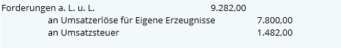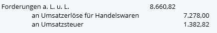 Umsatzerlöse für Eigene Erzeugnisse Umsatzsteuer an Forderungen a. L. u. L. | Umsatzerlöse für Handelswaren Umsatzsteuer an Forderungen a. L. u. L. |