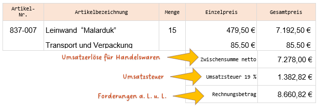 Auszug aus einer Ausgangsrechnung für Handelswaren