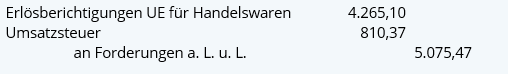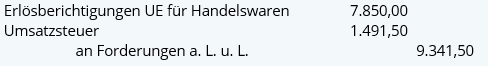 Erlösberichtigungen UE für Eigene Erzeugnisse Umsatzsteuer an Forderungen a. L. u. L. | Erlösberichtigungen UE für Handelswaren Umsatzsteuer an Forderungen a. L. u. L. |