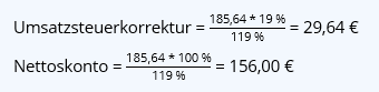 - Umsatzsteuerkorrektur 19 % 29,64 €