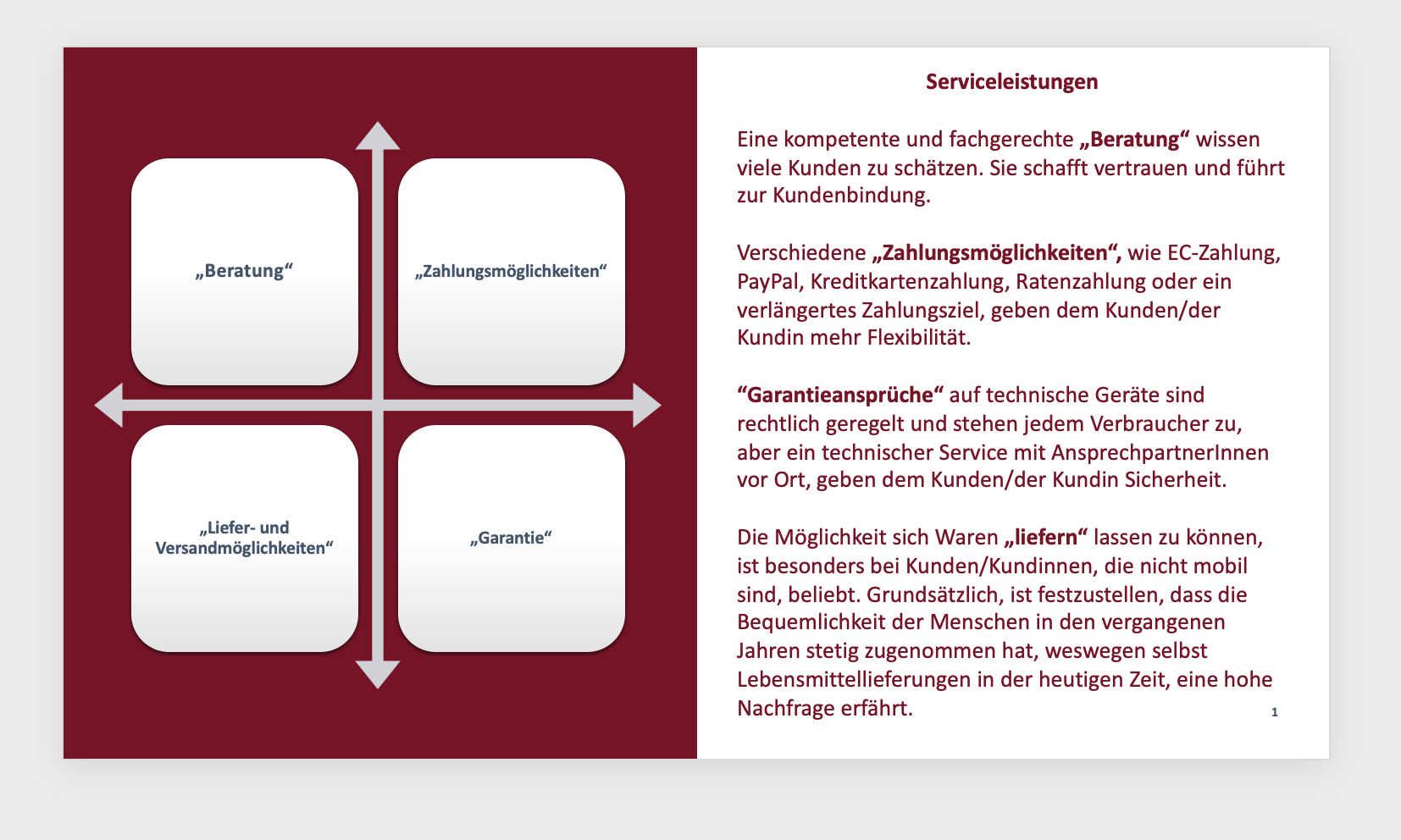 Die heutige Marktsituation, mit einer Vielzahl von MitbewerberInnen, wie Online-Shops und Unternehmen, die ähnliche Produkte und Dienstleistungen anbieten, hat es notwendig gemacht, sich durch spezielle Serviceleistungen von der Konkurrenz abzuheben.