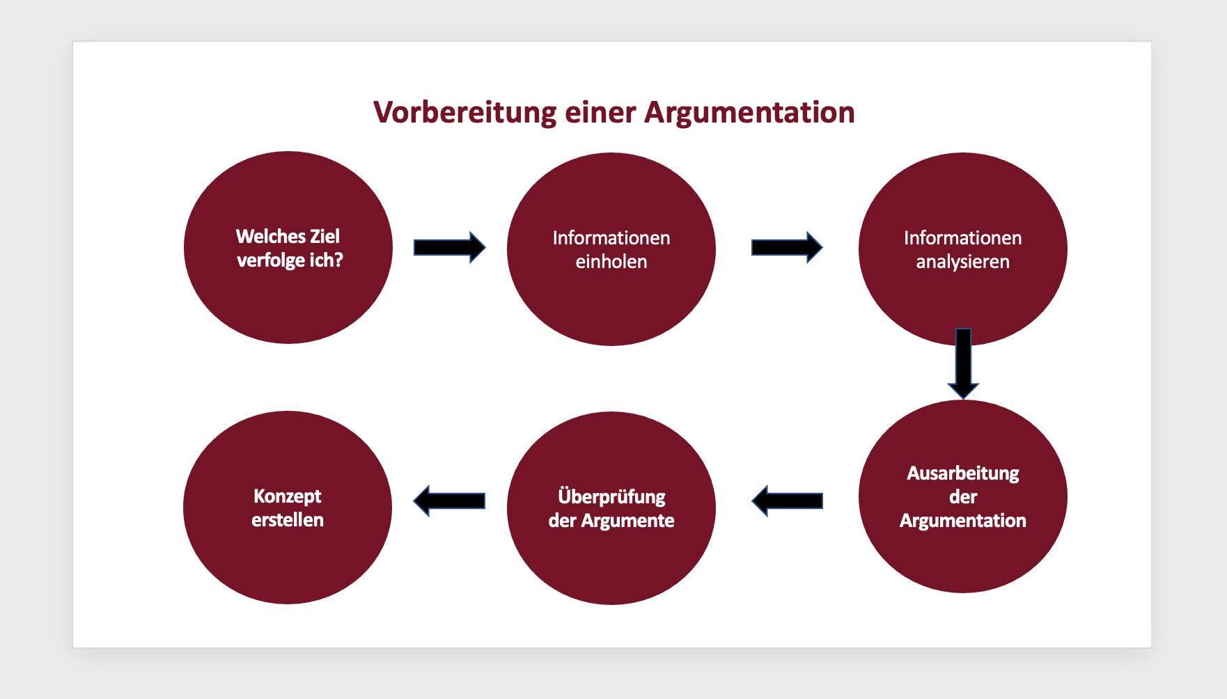 Deine Argumentation kannst du hervorragend vorbereiten, wenn du dich an den Leitfaden des oberen Bildes orientierst.