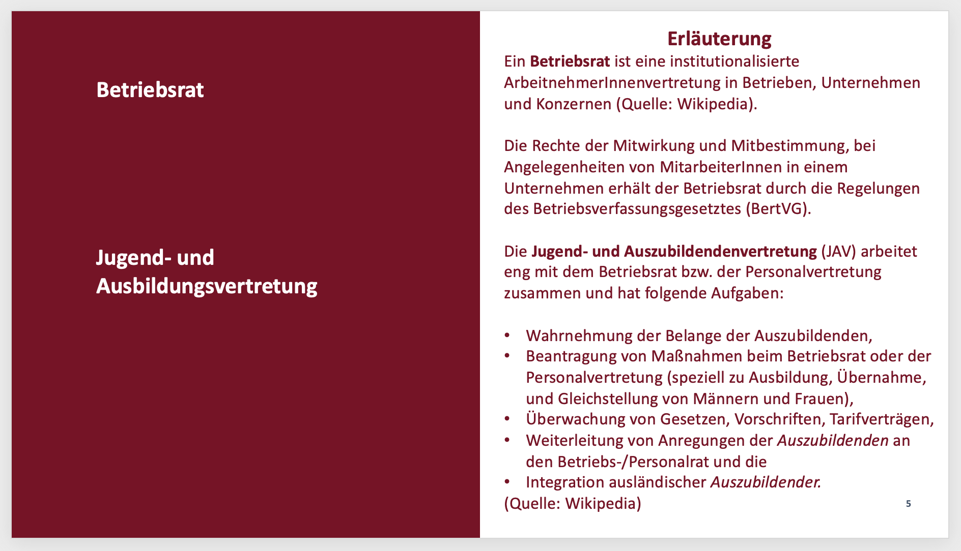 Hier findest du ein sehr interessantes Video. Wie Du ein Mitglied des Betriebsrates werden kannst, dessen Aufgabe und die Rolle der Jugend- und Auszubildendenvertretung (JAV)! Schau einfach rein!