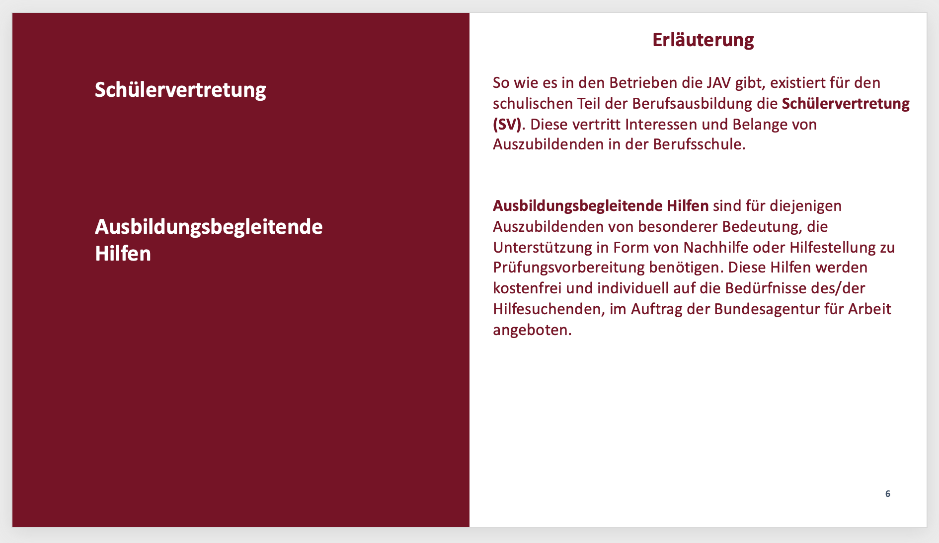 Während deiner Ausbildung wirst du mit einigen Institutionen und Interessenvertretungen in Berührung kommen. Die gesetzlichen Regelungen zur betrieblichen und schulischen Berufsausbildung sind komplex und liegen in den Aufgabenbereichen verschiedener Institutionen.