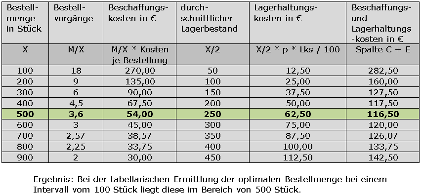Optimale Bestellmenge (tabellarische Ermittlung)