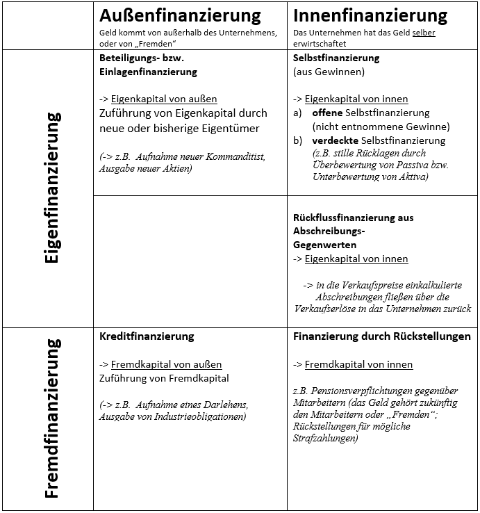 - Durch eigene Einlagen des Unternehmers (Eigenkapital)