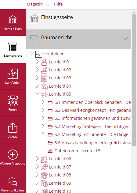 In der Baumansicht kannst du schneller navigieren. Durch einen Klick auf die kleinen Pfeile, siehst du, welche Teile noch zur Verfügung stehen. Mit einem Klick auf den Text kommst du zur entsprechenden Seite.