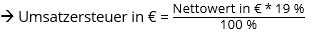 oder Umsatzsteuer = Nettowert * 0,19